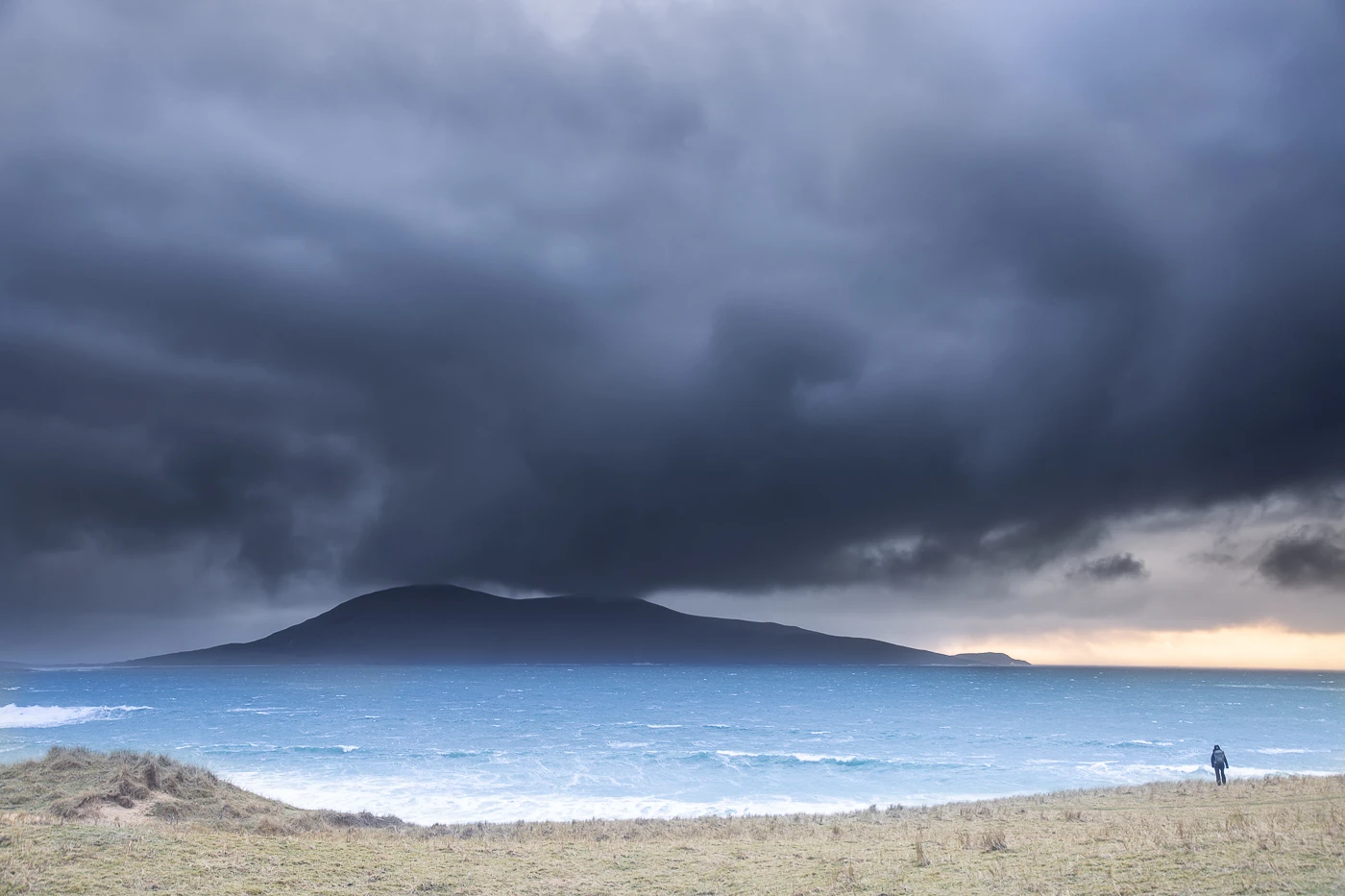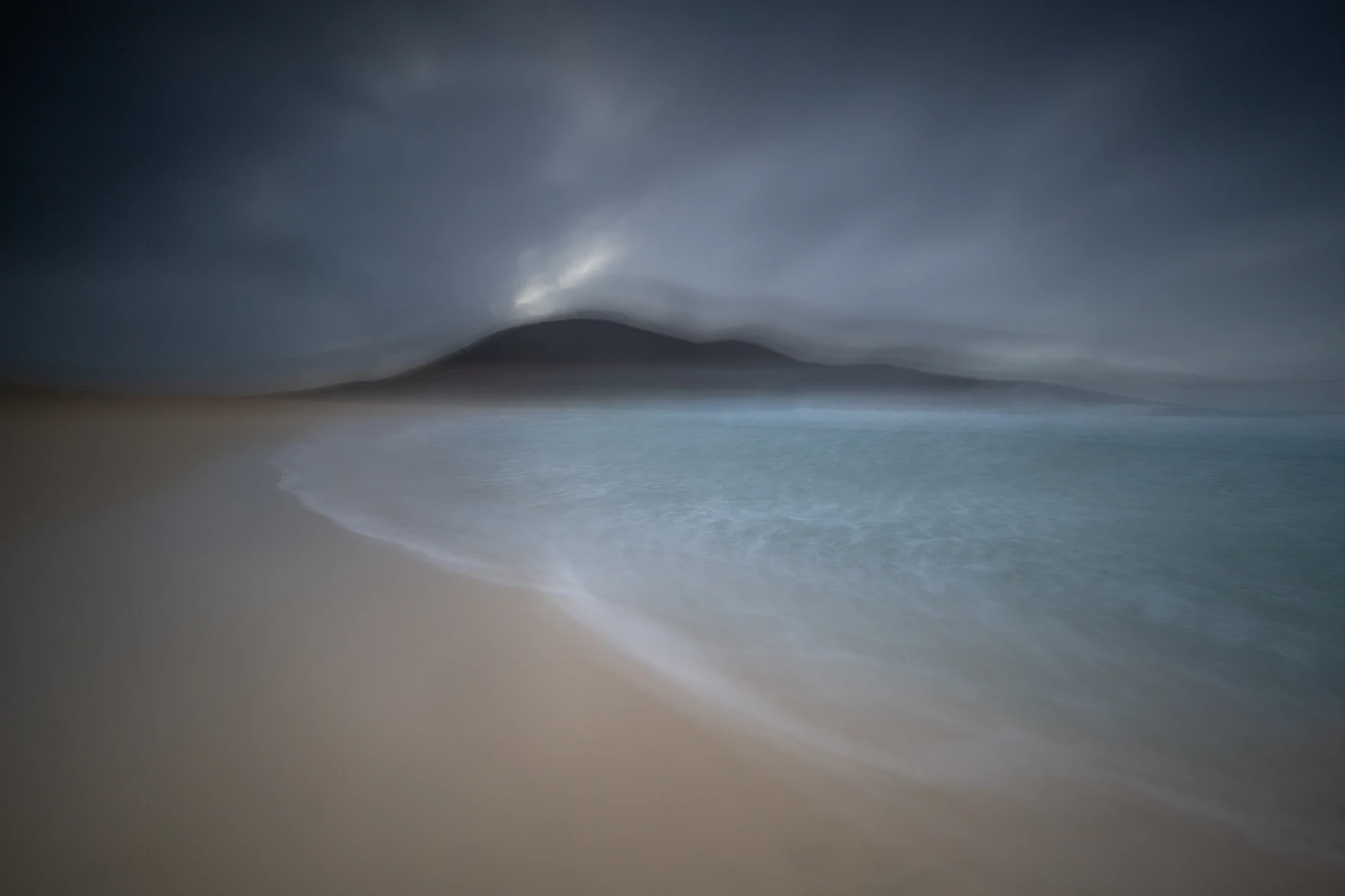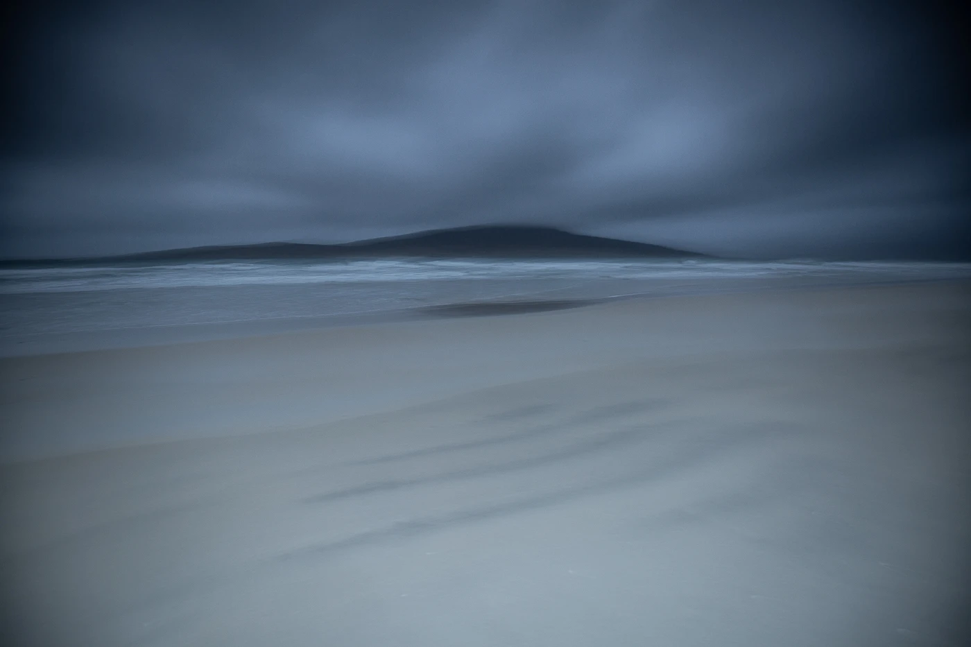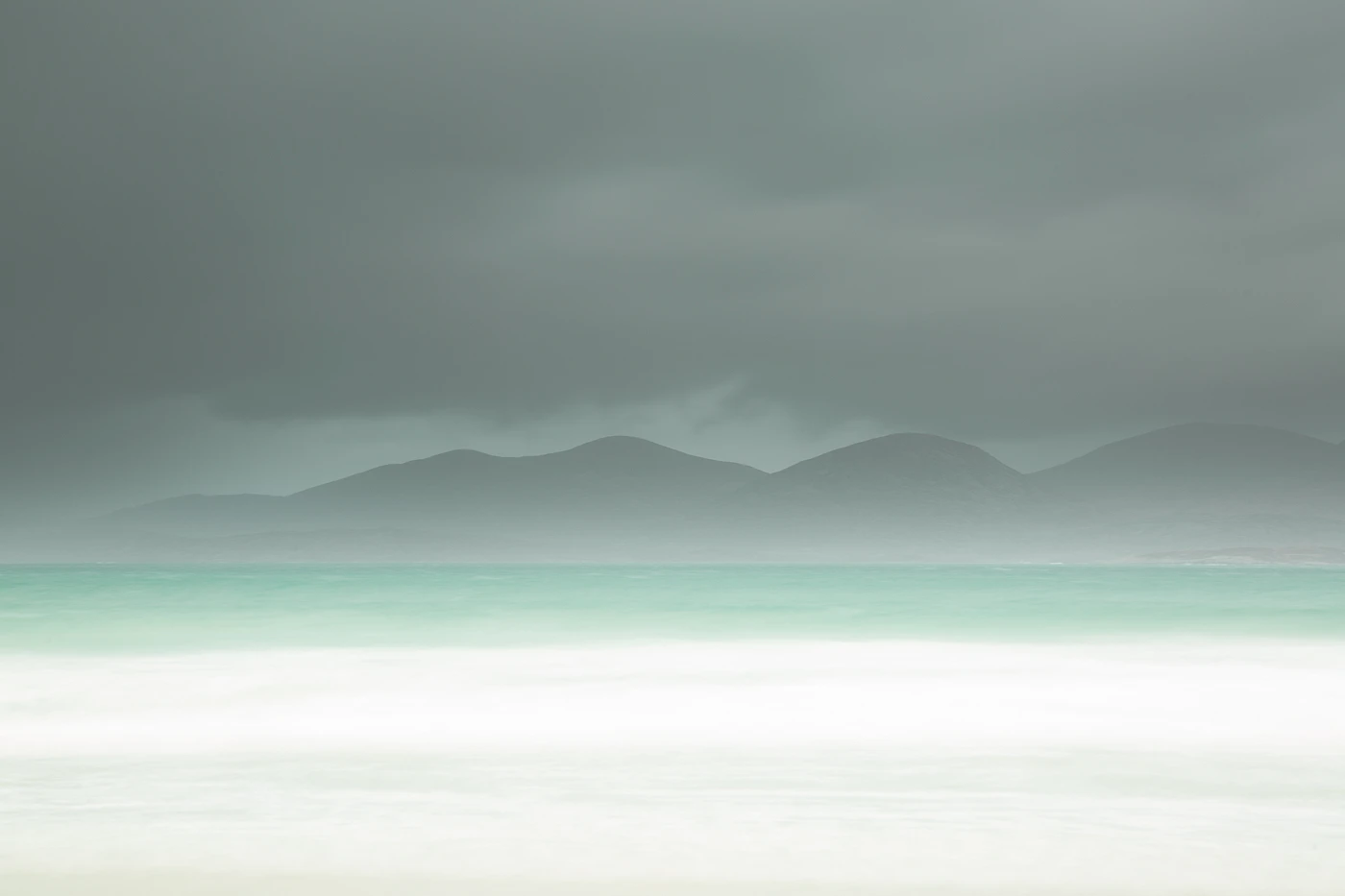 Nous avons vu les nuages danser à nos pieds dans l’eau limpide des grandes baies. Nous avons vu les voiles de la Chailleach surgir de l’océan atlantique pour engloutir les Uibhists. Nous avons vu les chevaux blancs de Manannan Mac Lir galloper vers le rivage et nous avons vu la lutte incessante entre lumière et obscurité.