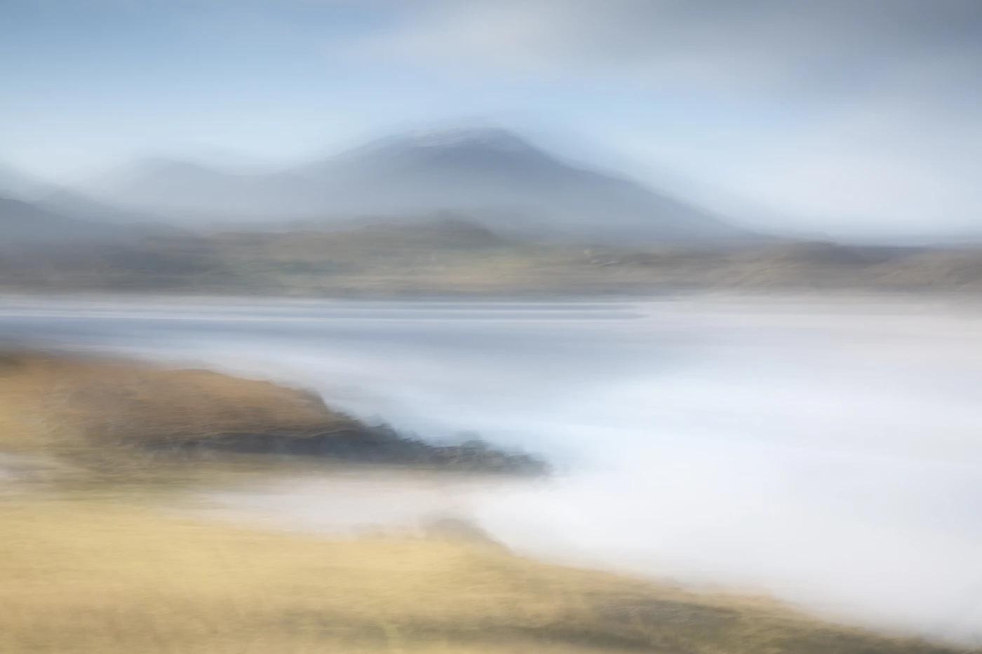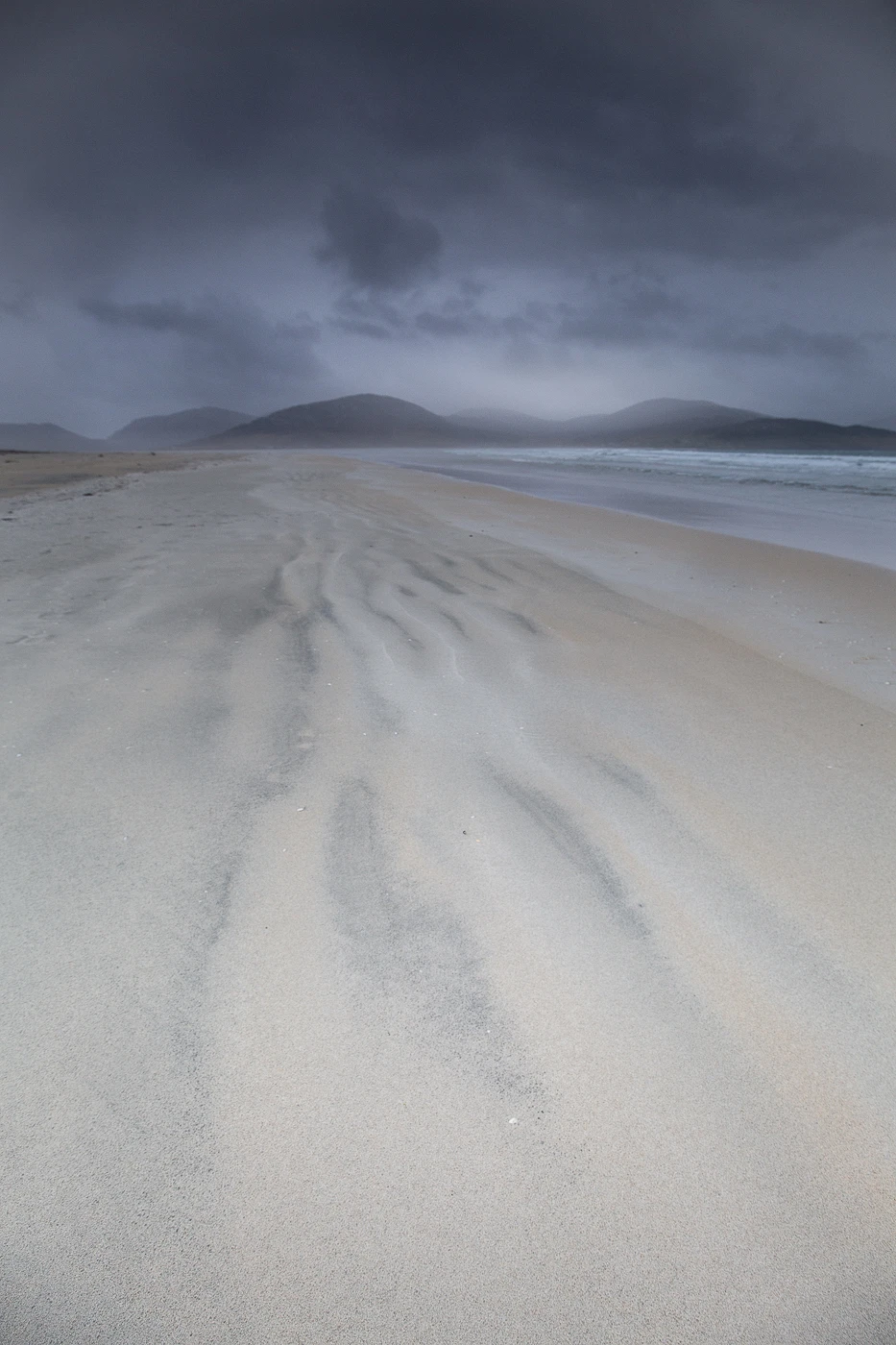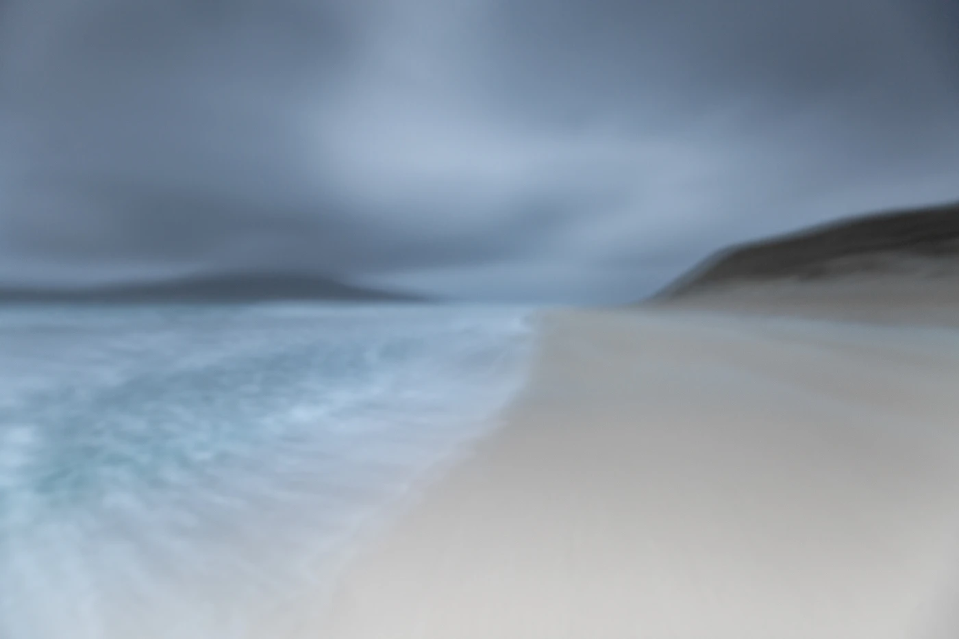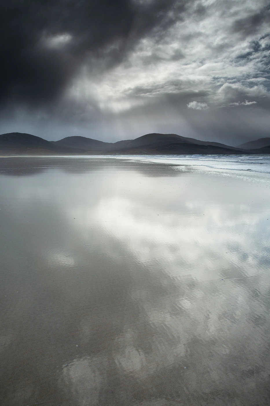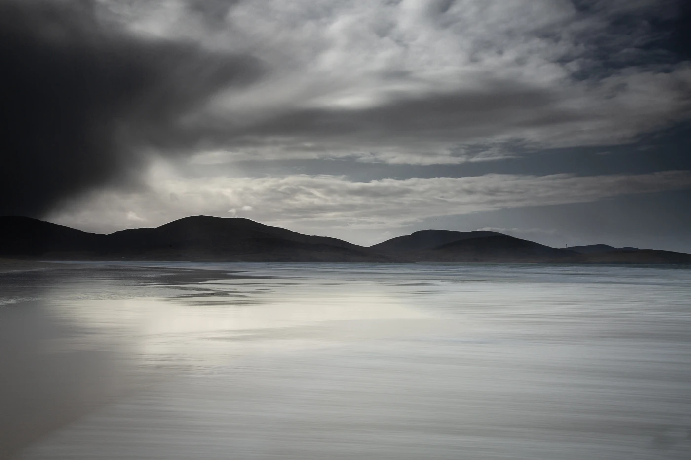 Nous avons vu les nuages danser à nos pieds dans l’eau limpide des grandes baies. Nous avons vu les voiles de la Chailleach surgir de l’océan atlantique pour engloutir les Uibhists. Nous avons vu les chevaux blancs de Manannan Mac Lir galloper vers le rivage et nous avons vu la lutte incessante entre lumière et obscurité.