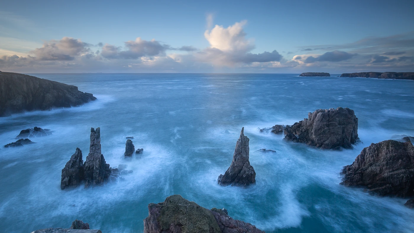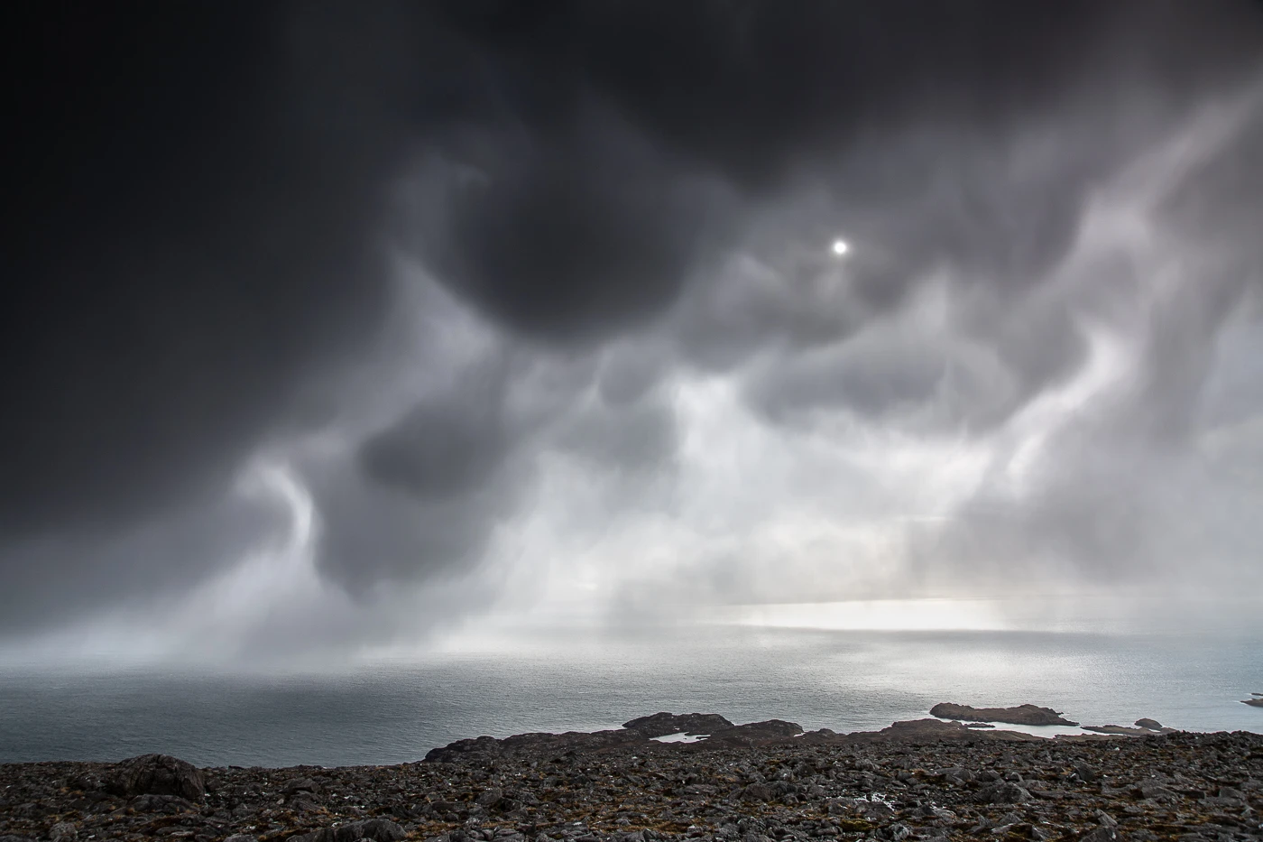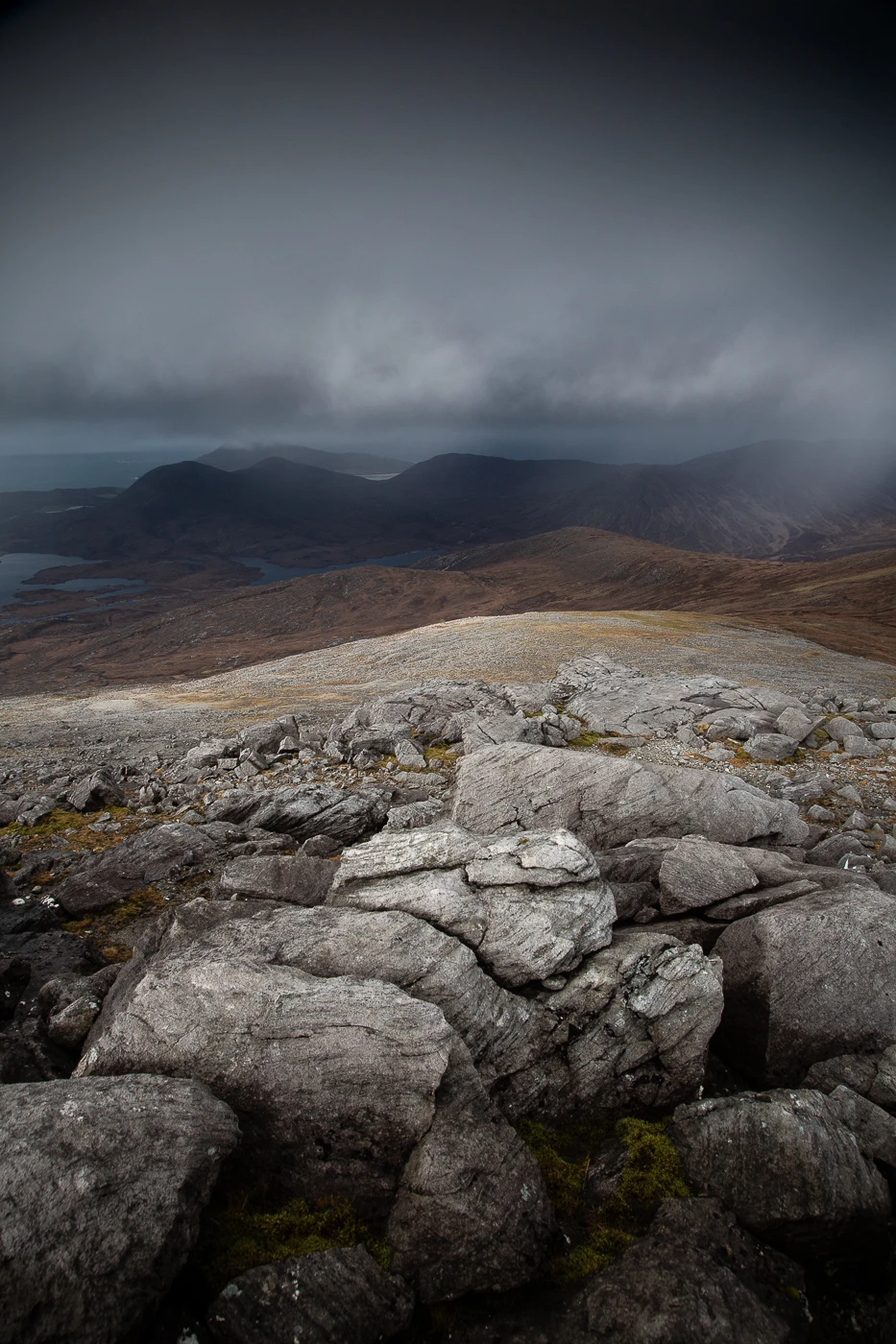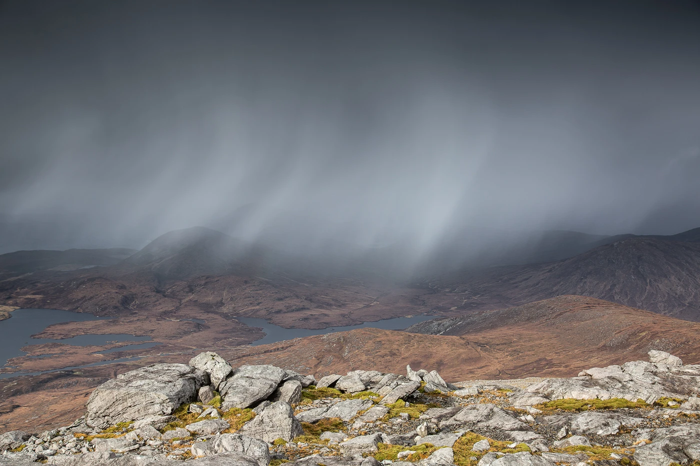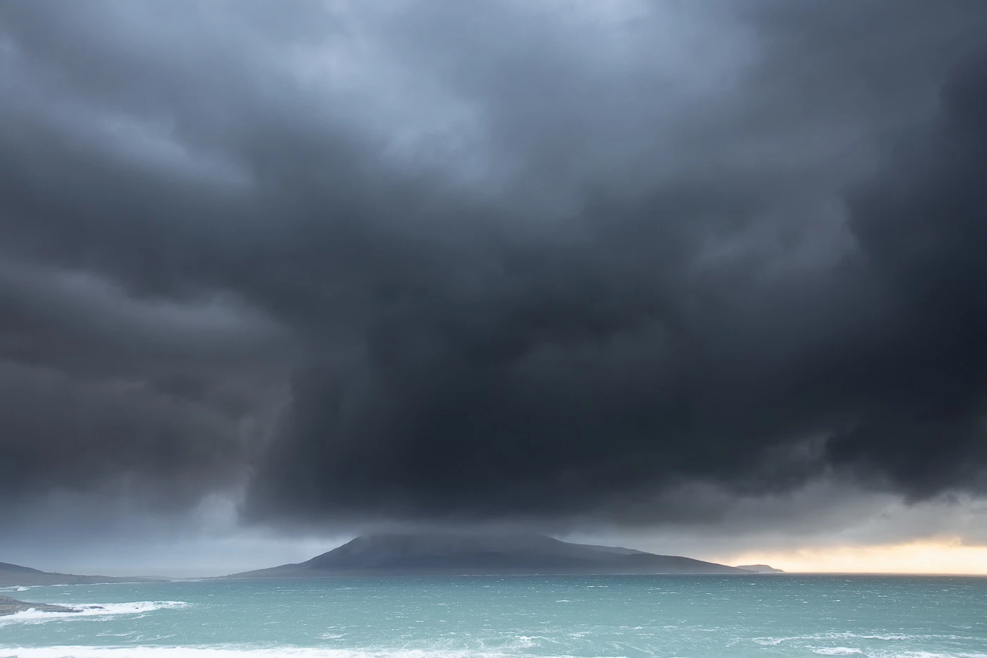 Nous avons vu les nuages danser à nos pieds dans l’eau limpide des grandes baies. Nous avons vu les voiles de la Chailleach surgir de l’océan atlantique pour engloutir les Uibhists. Nous avons vu les chevaux blancs de Manannan Mac Lir galloper vers le rivage et nous avons vu la lutte incessante entre lumière et obscurité.