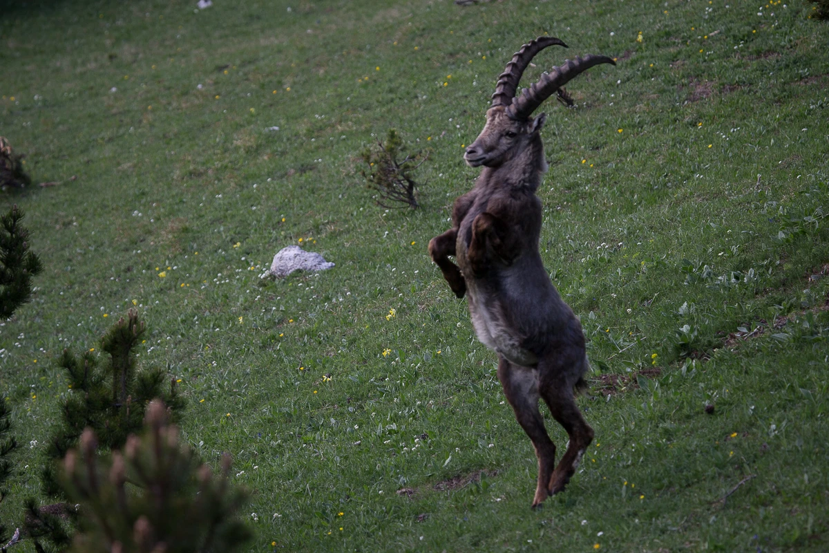 Jour 1 : rdv à La Chapelle en Vercors le samedi matin, puis départ pour la réserve des Hauts-Plateaux du Vercors. Deux heures de marche environ, dans un secteur sauvage de la Réserve, jusqu’à notre lieu de bivouac prévu pour le soir au milieu des ambiances emblématiques du Vercors. Repas du midi sur l’alpage. L’après-midi, petite marche à la rencontre des bouquetins. Nous partagerons avec vous nos connaissances naturalistes afin de vous aider à mieux comprendre ces animaux incroyables, qui sont aussi à l’aise dans l’herbe grasse de l’alpage que sur les vires aériennes. Photographie des bouquetins. Coucher de soleil sur les crêtes, avec nos conseils techniques pour réussir à saisir les instants magiques qui accompagnent les lumières crépusculaires. Repas du soir (un peu tardif) plus bas sur l’alpage, dans un écrin paisible et sauvage. Nuit en bivouac (tente)