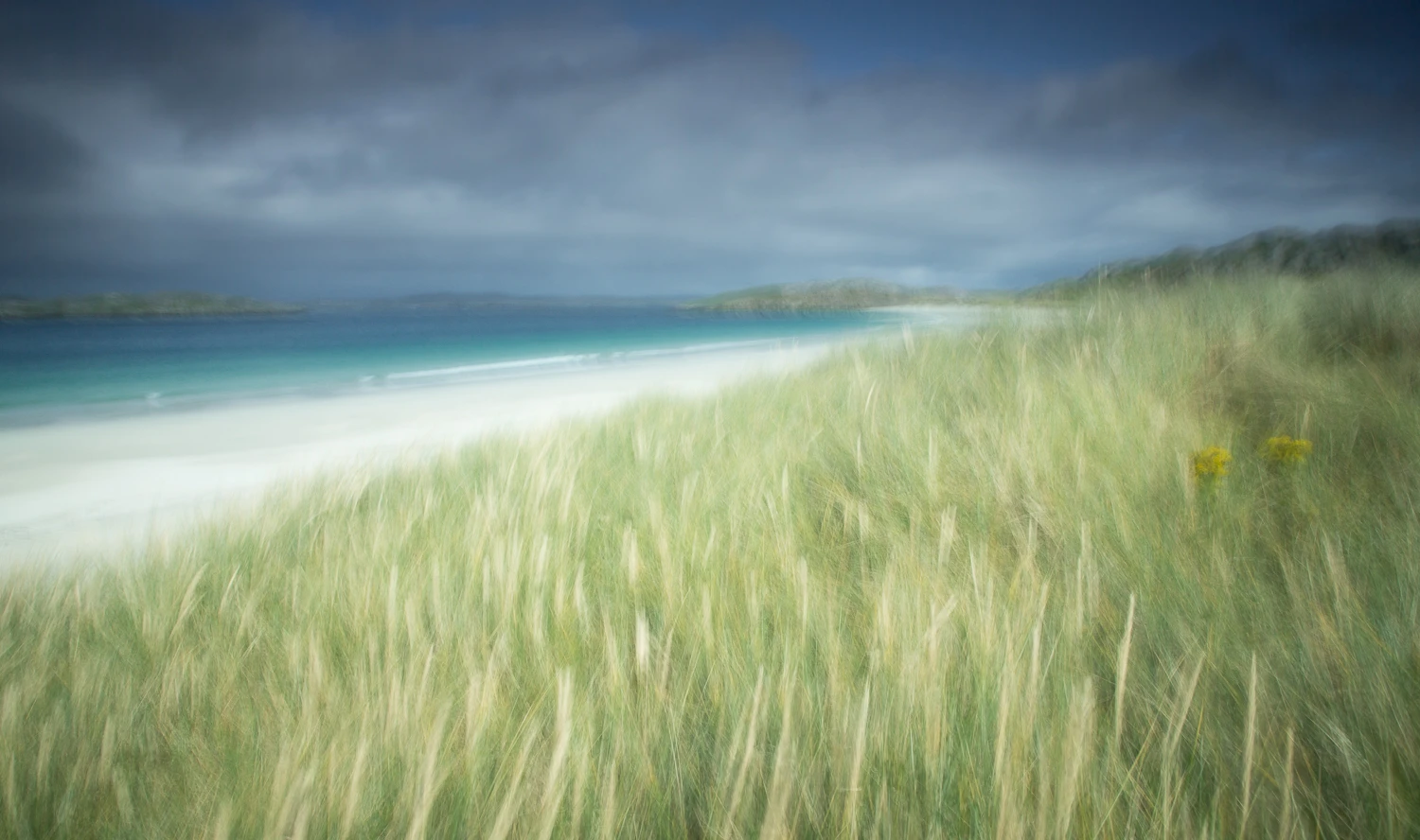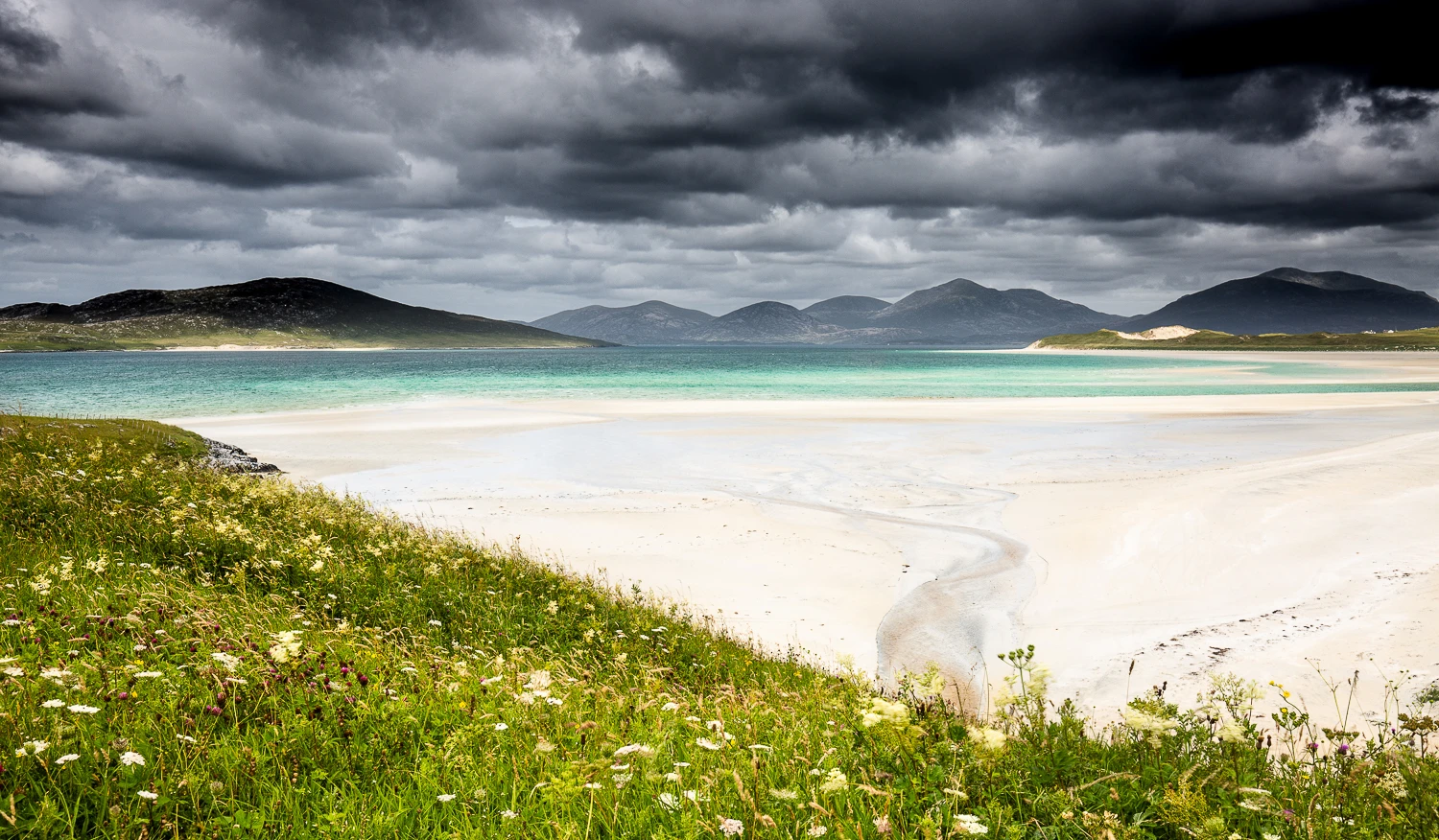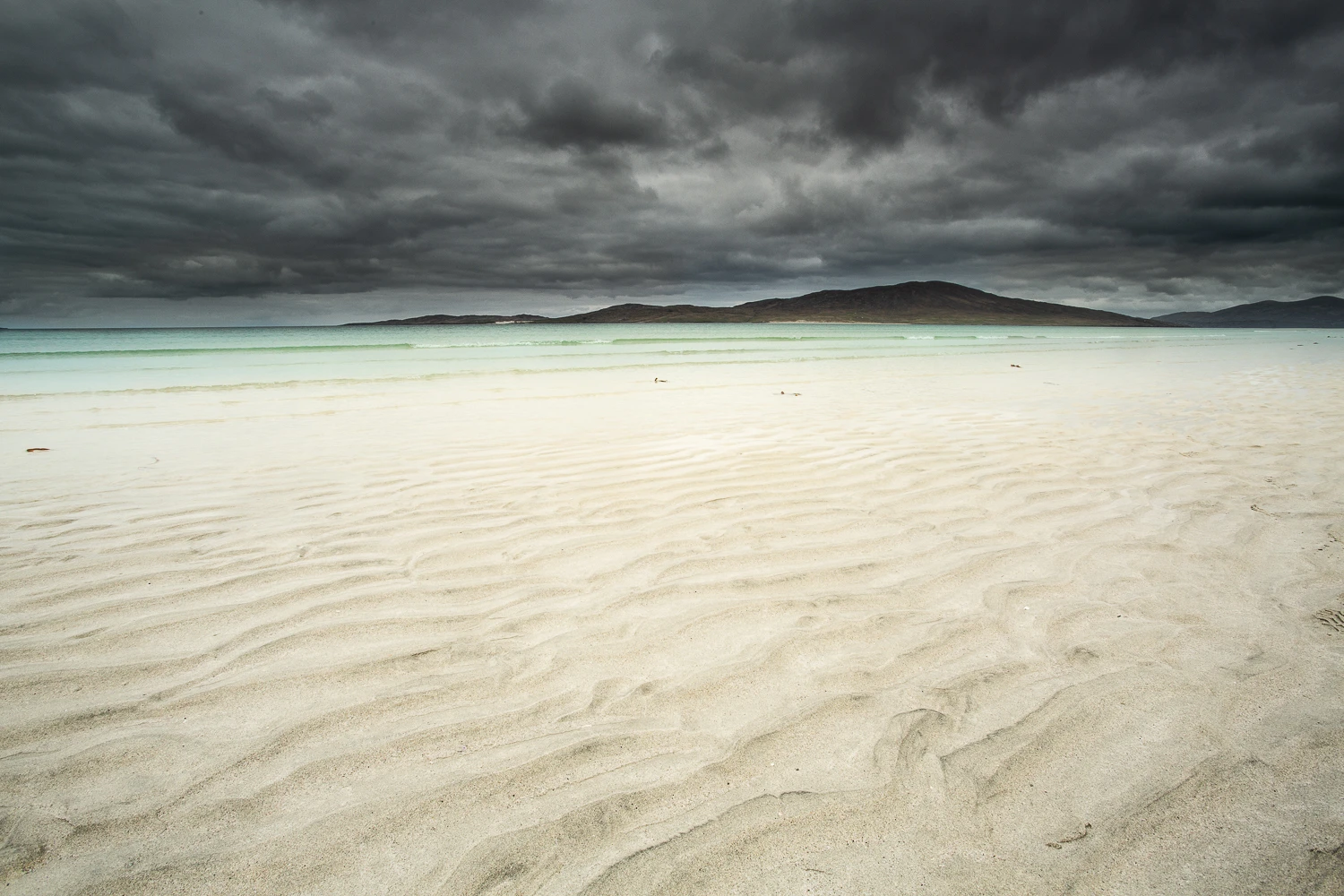 C’est une île perdue au nord de l’Ecosse, où le temps semble s’être arrêté il y a plusieurs siècles. Un joyau de landes, de montagnes douces, de dunes battues de vents farouches qui cachent d’ immenses plages d’un blanc éclatant. Et ce trésor intact est entouré d’eaux limpides, d’un bleu vert turquoise, comme un défi lancé au gris du ciel.