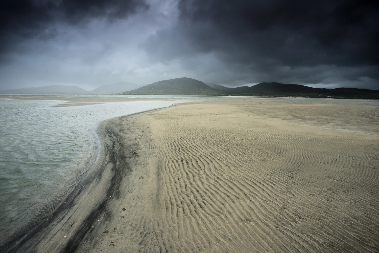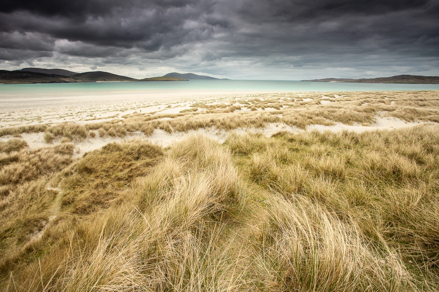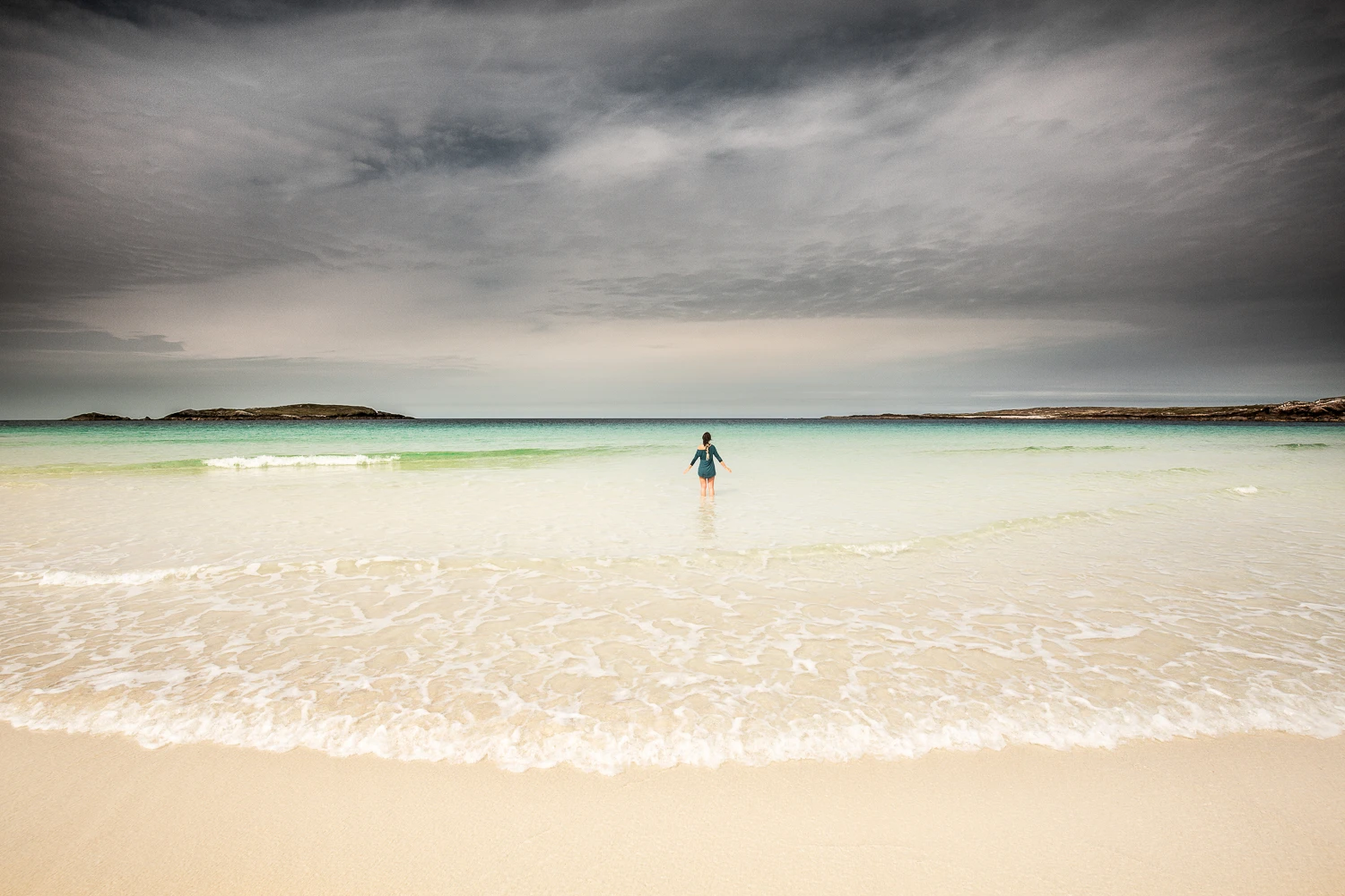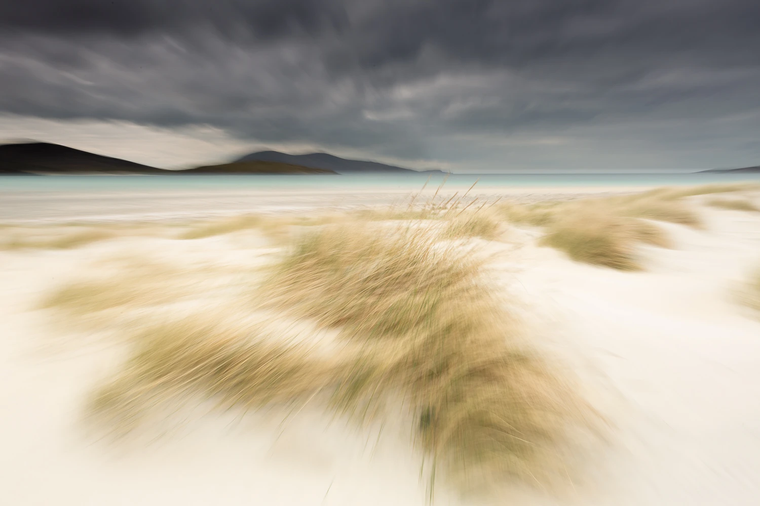 C’est une île perdue au nord de l’Ecosse, où le temps semble s’être arrêté il y a plusieurs siècles. Un joyau de landes, de montagnes douces, de dunes battues de vents farouches qui cachent d’ immenses plages d’un blanc éclatant. Et ce trésor intact est entouré d’eaux limpides, d’un bleu vert turquoise, comme un défi lancé au gris du ciel.