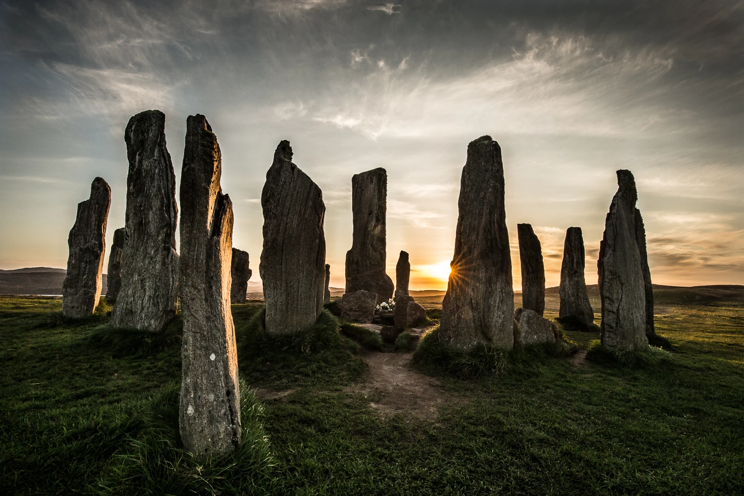 Marcher ici, c’est entrer dans un autre monde, un autre temps, où chaque découverte a quelque chose à nous dire. Les cercles de pierres dressées murmurent des mystères à ceux qui prennent le temps de les écouter, les côtes escarpées racontent des légendes anciennes qui parlent d’êtres mi-humains, mi-animaux, les longues baies aux eaux limpides gardent la lumière de mondes éteints depuis longtemps, et que l’on croit voir danser sous les vagues.